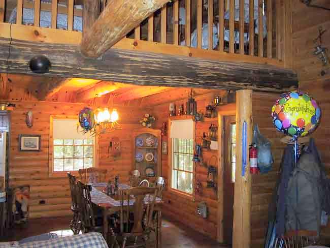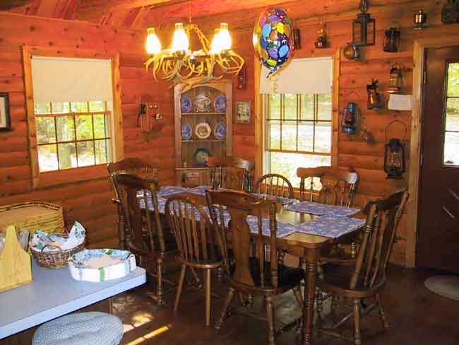 Our Dining Area shares the core of the Cabin with the Kitchen and the Living Room Areas. On special occasions, with the manipulation of furniture, we have had formal sit-down dinners for as many as 22 people.
