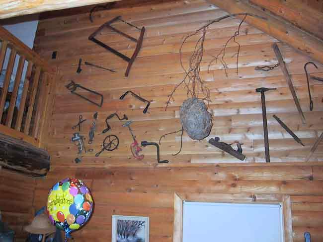 This Living Room or Great Room is the core of the Cabin. With its 21 feet high ceiling made of log rafters and stone fireplace that goes all the way up, you feel like you're in a special place. Move the cursor onto the fireplace and you can almost feel the heat.